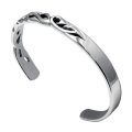 流れるようなヴァイン模様が特徴的なシルバーバングルです。ヴァインのモチーフをあえて中心からズラしたバランスでデザインされ、シャープなシルエットが手首周りをグッと引き締めます。飽きのないデザインで長く愛用できるおすすめの逸品です。