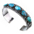 | 説明 | 大粒の天然ターコイズを五石もあしらった、インディアンジュエリーの代表格ともいえるナバホ族バングル。ターコイズを色形ありのままで使用しているため一点一点異なる仕上がりで、まさに世界に一つだけの特別感がたまらない一品。両サイドには瑞々しく生命力溢れる草木が彫り込まれ、隅々まで余すことなく楽しめるアイテムです。 ※天然石の為、入荷時期により模様の有無や色味が異なる場合がございます。 | |