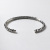 中央に燻しをかけた槌目を、その両側に太陽のマークをデザインしたバングル。断面はひし形で、幅感以上に重量感があります。ユニークなデザインが好きな方にオススメのアイテムです。