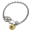 イーグルフックとメディスンホイール・イーグルメタルという、ネイティブ系定番の組み合わせを留め具にあしらったチェーンブレスレットです。イーグル(鷹)は空高く飛ぶことからネイティブアメリカンの間では父なる空からの神の遣い・神聖な存在としてあがめられ、「高い理想を持ち、それに近付いていく」象徴ともされています。全体がチェーンのブレスレットなので、主張しすぎずカジュアルにネイティブ系アクセサリーを楽しめます。アメカジコーデに合わせるのがオススメです。 シルバー925は上品かつ高級感のある輝きが特徴。適切なお手入れで輝きを保つことも自分色に育てることもできる、永くご愛用頂ける貴金属です。 | |