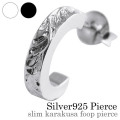 唐草模様が彫りこまれたフープ型のピアス。スリムでシンプルなデザインのピアスなので、他のデザインピアスと組み合わせ易くなっています。また、綺麗目な雰囲気のピアスなので、男性はもちろん女性の方にもお勧めです。
