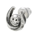 | 説明 | 中心にスマイルが入った、ユニークなホースシュー(馬蹄)ピアス。燻し加工の黒が入ったねじれ形状のホースシューがワイルドな印象で、スマイルとのギャップが面白いデザインになっています。着ける人のちょっとした遊び心を感じさせる、カジュアルコーデに合わせたくなるアイテムです。 | |