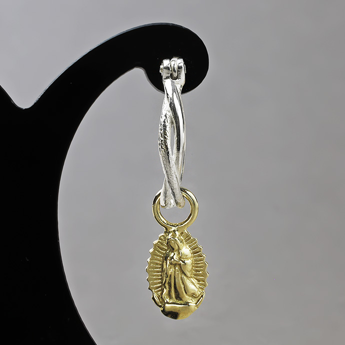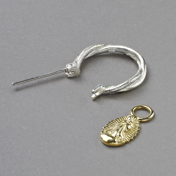 【素材】 シルバー925、ブラス(真鍮) 【サイズ】 縦:約15mm、横:約17mm、幅:約3mm ポスト:20ゲージ(約0.8mm) マリアメダイ部分:縦:約11.5mm、横:約7.5mm | |