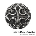 エッジの利いたクロスの周りに唐草模様のあるコンチョです。コンチョを変えるとそのアイテムの雰囲気がガラッと変わるのでおススメです。