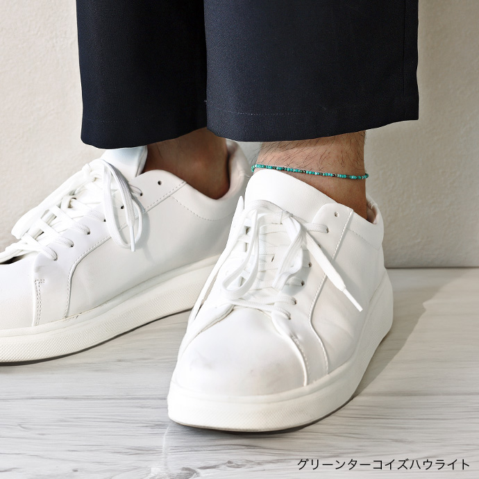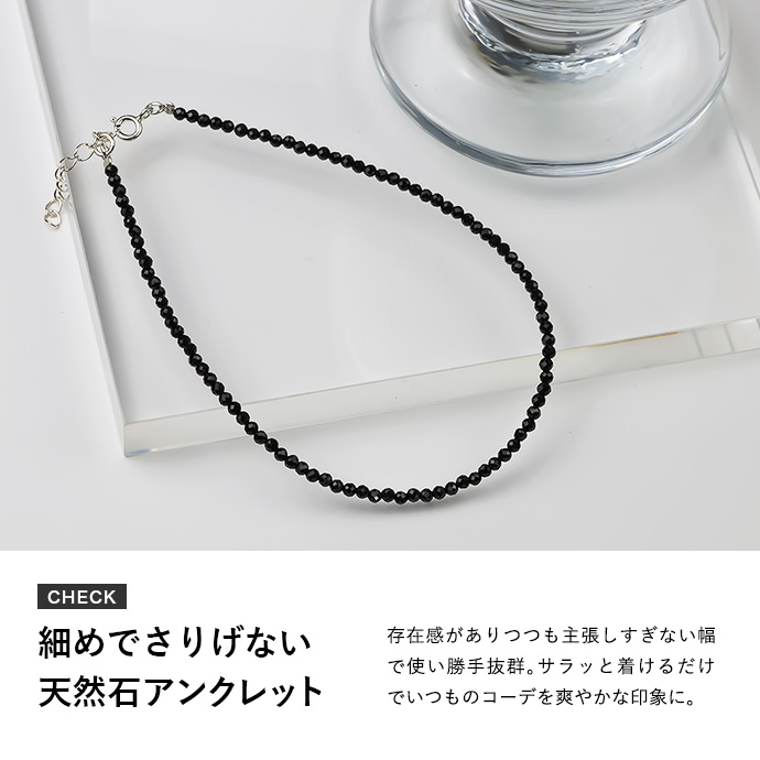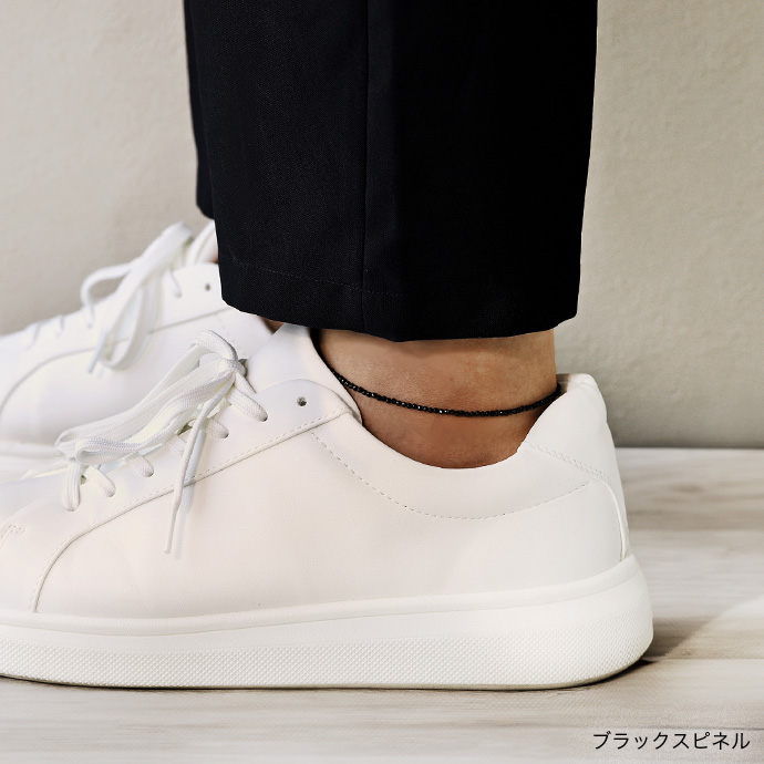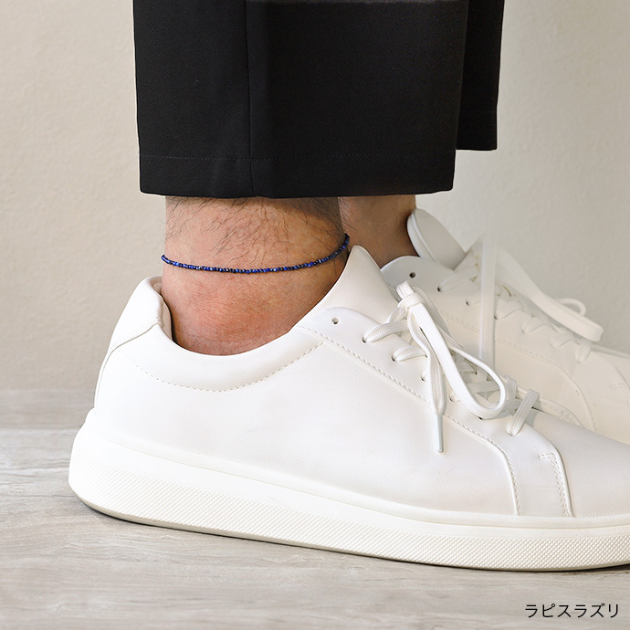 多面カットが施された小さめの天然石を使用したアンクレットです。存在感がありつつも主張しすぎない細め幅で、サラッと着けるだけでいつものコーデを爽やかな印象に。 アジャスターで長さ調整可能なのでむくみやすい人も安心、男性も女性も着用いただけます。気分やコーデに合わせて着ける色を変えるのも楽しい、足元まで隙の無いコーデに仕上げてくれるアイテムです。 [2025年7月11日リニューアル]石のラインナップを一部変更しました | |