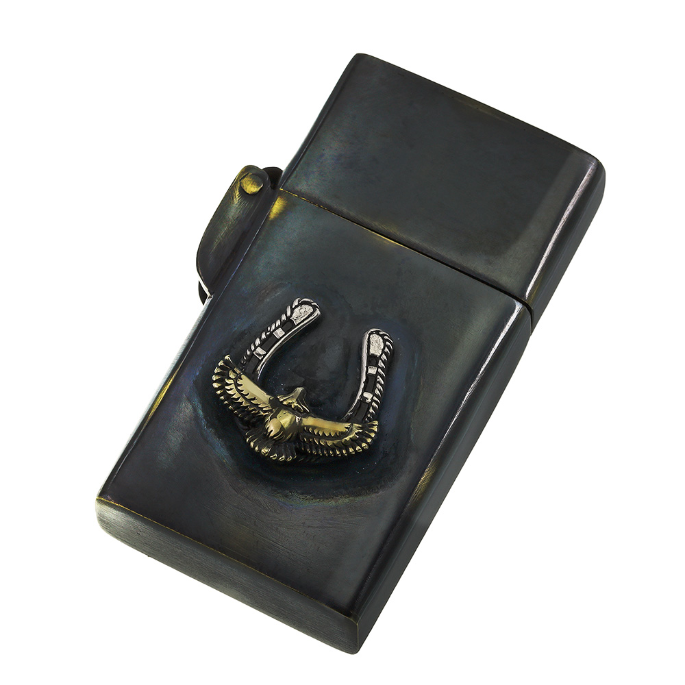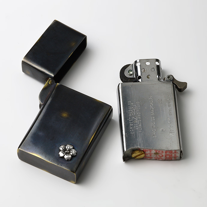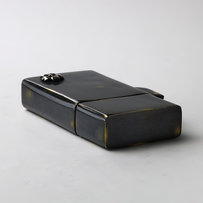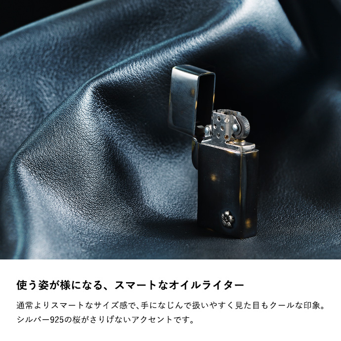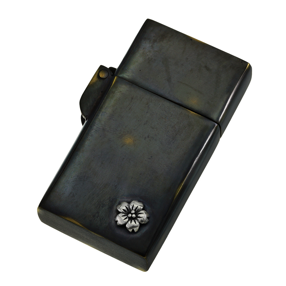 | 説明 | 外装に古美仕上げを施したオイルライター。シルバー925製の桜の花がアクセントになっています。通常よりスマートなサイズ感で、手になじんで扱いやすく、見ためも野暮ったくなくクールな印象。全体に色ムラや擦れたような跡、あえて真鍮の地の色を出している箇所などがあり、まるで使い込んだような風合いを楽しめます。深みのあるボディにシルバーの桜が目を引く、使う姿まで様になるアイテムです。 | |