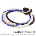 ナチュカジさん必見のブレスレットが登場!ダークブラウンのオイルドレザーとビビッドカラーのビーズ、オフホワイトのナチュラルコットンの3本を束ねたナチュラルでカジュアルなブレスレット。自然な存在感で、腕元をそっと引き立ててくれますよ♪ユニセックスなデザインだからペアにもオススメです!!