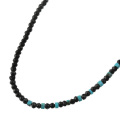 | 説明 | ブラックスピネルとターコイズを使用した天然石ネックレス。キラキラ輝く多面カットを施したスピネルとは対照的に、シンプルな円柱カットのターコイズビーズが全体にアシンメトリーに配置されており、様々な角度から色々な表情を楽しむことができます。ペンダントトップを通すことも可能なのでアイデア次第でアレンジ無限大。爽やかなマリンブルーとブラックのコントラストで、周りと差を付けたい人にぴったりのアイテムです。 | |
