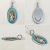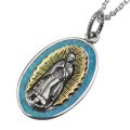 | 説明 | 聖母マリアが描かれた「不思議のメダイ」がモチーフのペンダントです。周囲にはランダムに砕いたターコイズが敷き詰められています。真鍮のゴールドカラーとターコイズの青によって、聖母マリアの神聖さが見事に表現されています。