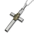 説明 | 中央に金色のマリアメダイがデザインされたクロス(十字架)ペンダント。一見細めに見えるクロスですが厚みがしっかりとあるため、サイズ以上の満足感のある重みが楽しめます。クロス前面のエッジにざらりとしたテクスチャを施してワイルドさをプラスしているので、カジュアルコーデと合わせるのもオススメです。 | |