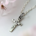 桜 透かし彫り クロス ペンダント ≪1.5mm4面カットアズキチェーン割引セット≫ メンズ レディース ネックレス サクラ さくら 和 [シルバーペンダント]
