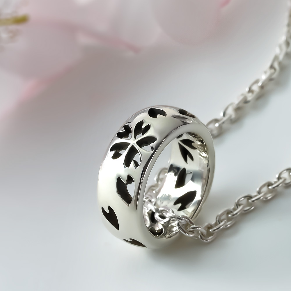 桜 透かし彫り リング ペンダント ≪2mmアズキチェーン割引セット≫ メンズ レディース ネックレス サクラ さくら 和 [シルバーペンダント]