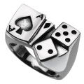 | 説明 | トランプのカードとダイス(サイコロ)が一緒にデザインされたリング。モチーフが立体的に表現されておりボリュームがありますが、裏側がくり抜かれているので程良い重量感を楽しめます。ギャンブラーの方はもちろん、個性的なリングが好きな方にはたまらない逸品です。 | |