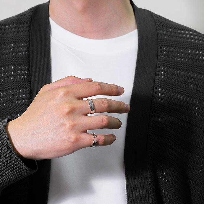 【素材】 シルバー925 【サイズ】 Sサイズ(7~11号)、Lサイズ(12~17号) 幅:約5mm、厚み:約3mm(モチーフ部分) | |