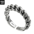 シルバーのワイヤーをロープ風に編み込んだデザインのリング。ロープ部分は厚みがあり、リング幅の中央が山のように盛り上がるデザインになっています。そのため正面から見るとスマートに、横から見ると迫力のある、角度によって印象が変わる面白いリングです。 編み込みの隙間には燻し加工を施し立体感を強調。これ1本で様になる、男性女性問わずお着けいただけるアイテムです。 ※ロープ部分と余白部分との接合部分に小さなヒビがある場合がございますが、商品の仕様であり不良ではございません。 | |