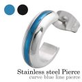 カーブラインブルー ピアス メンズ 男性 [ステンレスピアス] 片耳用(1個売り)