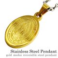 ゴールドメダイリバーシブルスチール ペンダント ≪2mmアズキスチールチェーン≫ コイン アクセサリー [ステンレスペンダント]