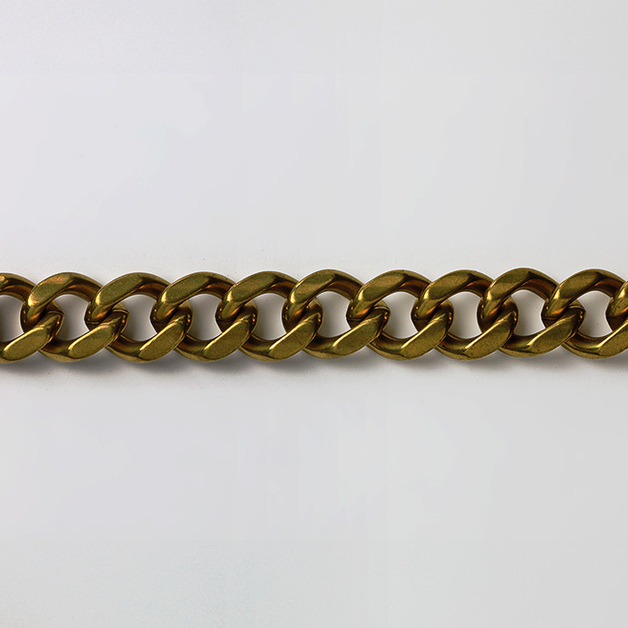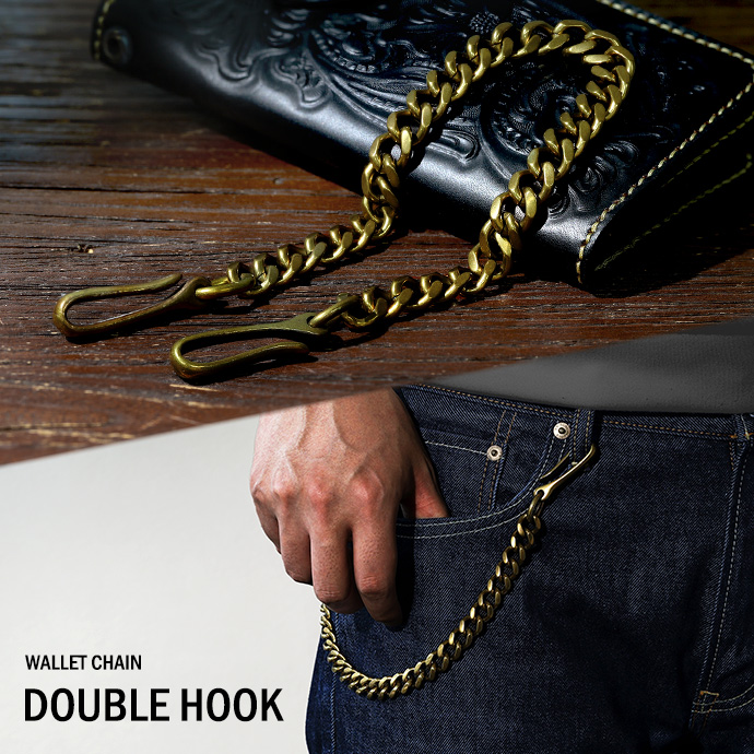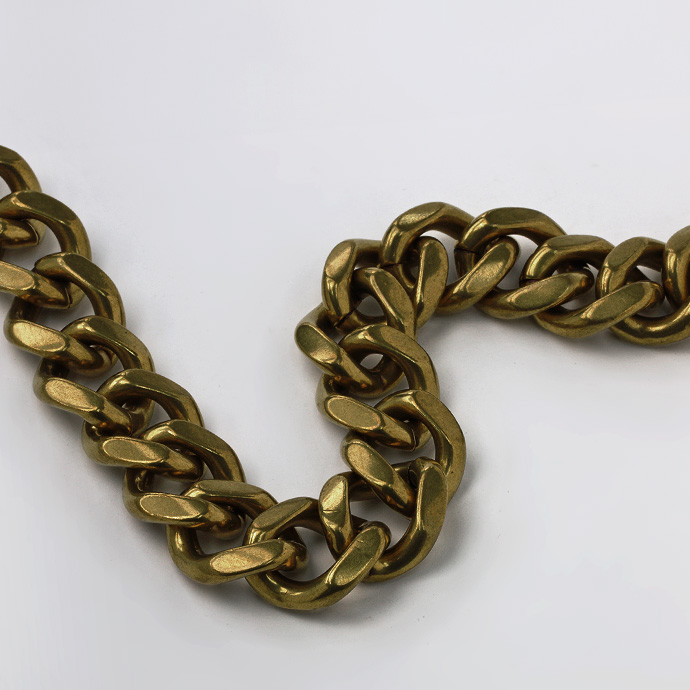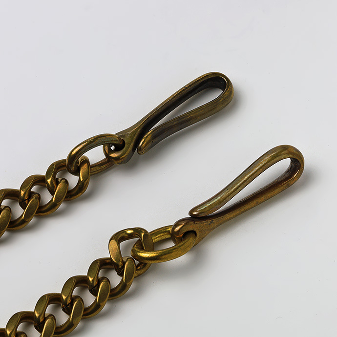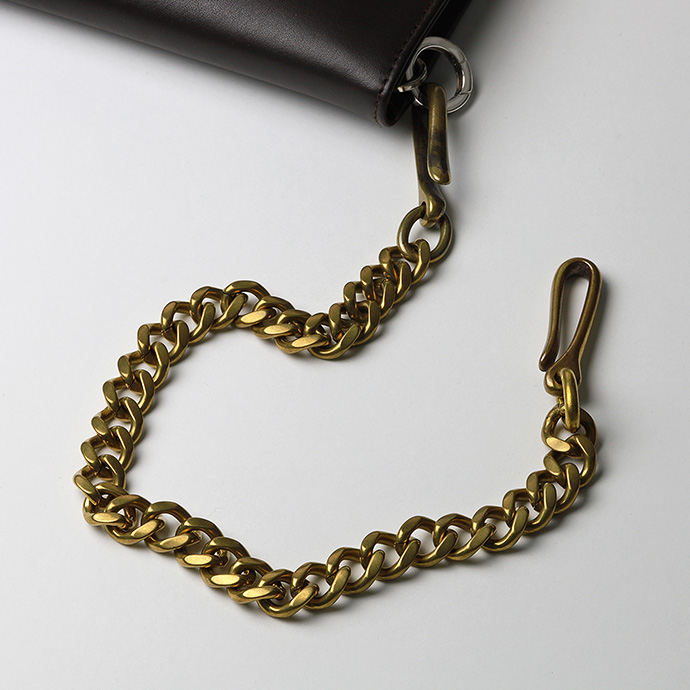| 説明 | 両端にシンプルなフックが付いた喜平タイプのウォレットチェーン。幅約12mmの極太喜平チェーンとブラスを使った渋いゴールドの色合いが、重量感と相まって無骨な雰囲気を醸し出します。主張しすぎずカジュアルに着けられるショートサイズ。素材であるブラス(真鍮)はヴィンテージな風合いを感じさせる色味や質感が魅力。落ち着いた金色なのでギラつきすぎずコーディネートに馴染みます。他のシルバーチェーンにはない独特の雰囲気が周りの視線を集めることうけあいです。 | |