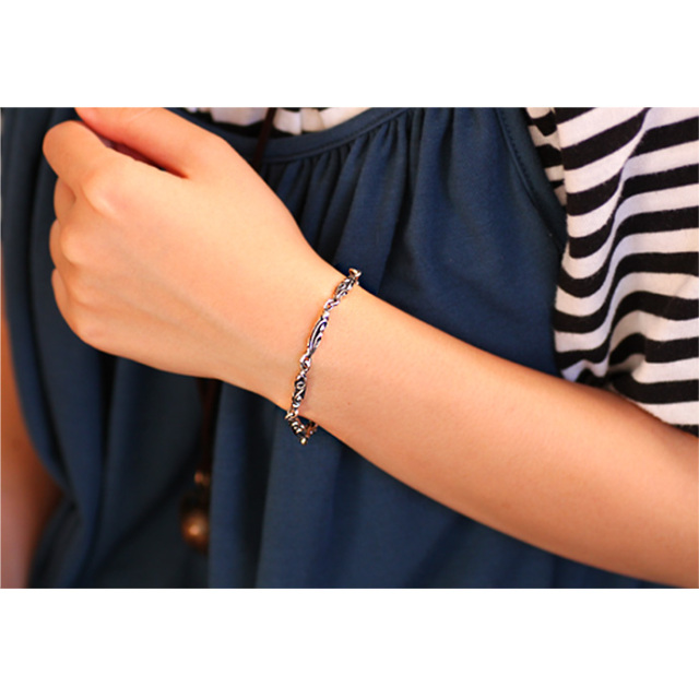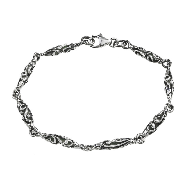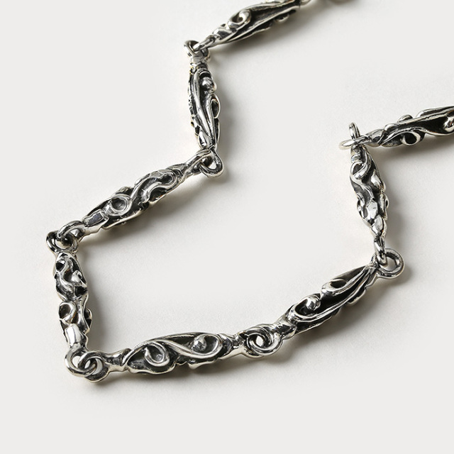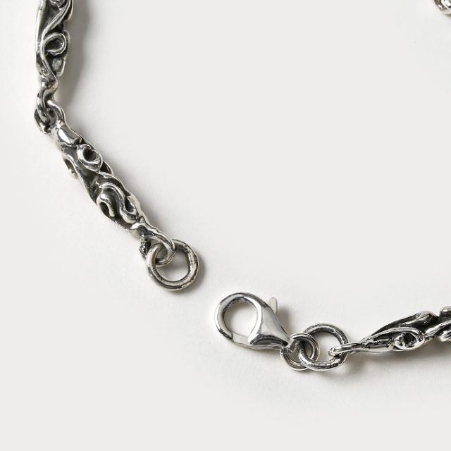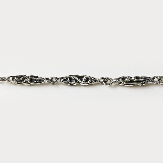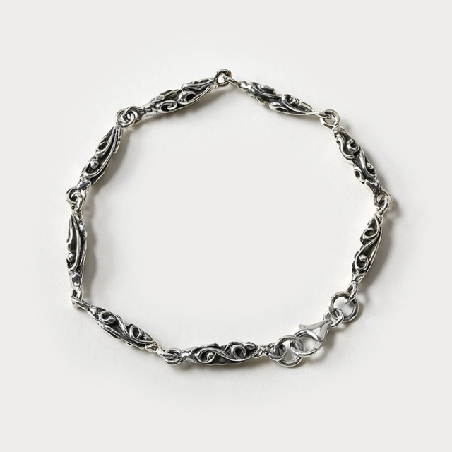 サラッと着ける事が出来るブレスレットをテーマに作り上げられたスクロールコラムブレスレット。流れるような波模様に燻し加工を施すことにより、細めのブレスレットながら存在感のあるデザインに。さらに重ねづけにも相性が良く、カジュアルにもキレイめにもコーディネートできるアイテムに仕上がりました。サラッと着けて頂けるので年齢を問わず一生使っていけるシルバーブレスレットです。