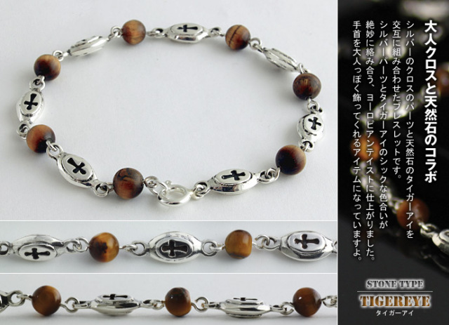 クロス チェーンタイガーアイ ブレスレット シルバー アクセサリー [シルバーブレスレット]