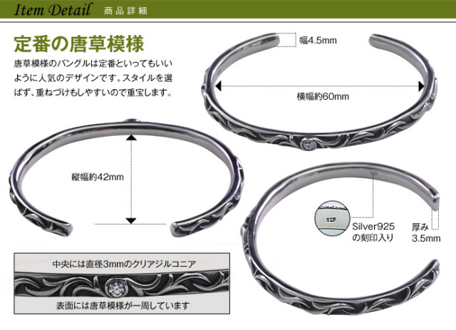 ジルコニア ヴァイン バングル シルバー アクセサリー [シルバーブレスレット]