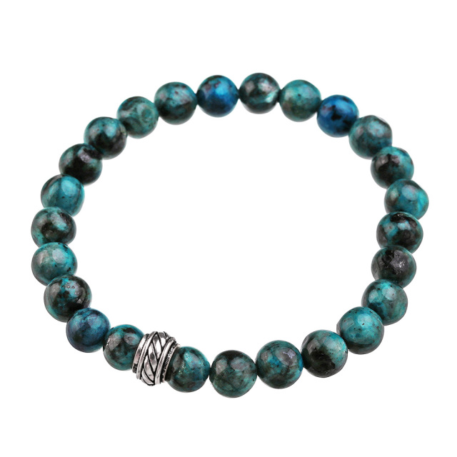 天然石のジャスパーを、人工的にブルーに染め上げたブレスレットです。