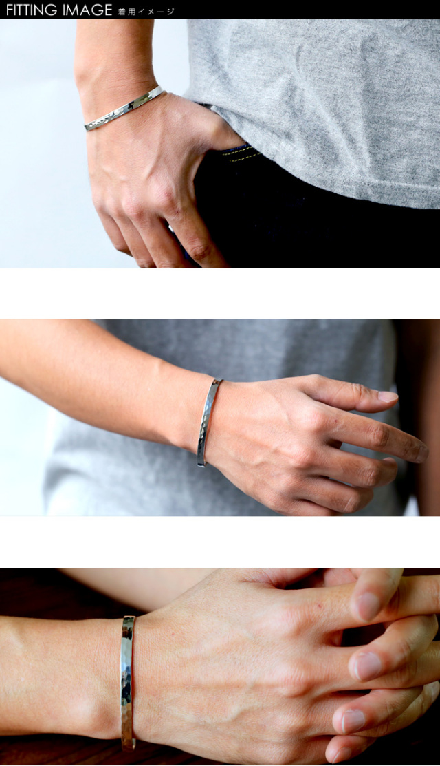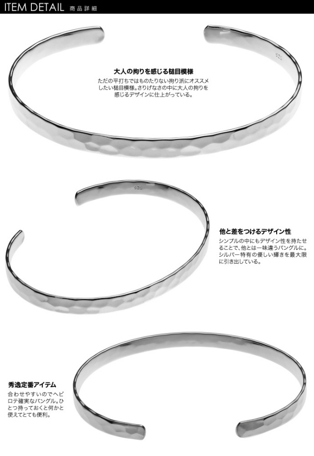 定番 槌目 プレーン バングル 平打ち シルバー アクセサリー シンプル ブレスレット メンズ 調節可能 [シルバーブレスレット]