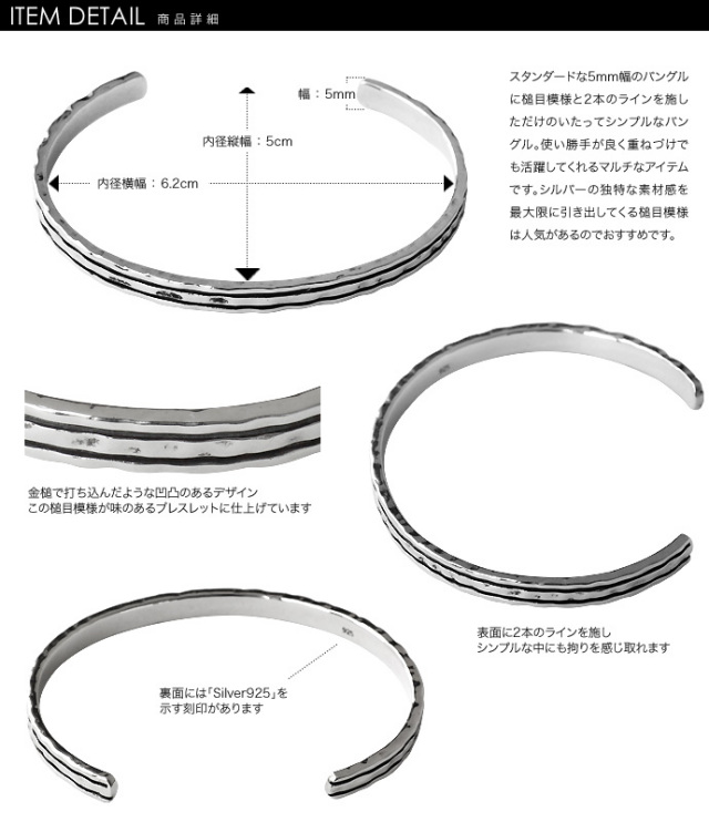 槌目仕上げツインライン バングル シルバー アクセサリー [シルバーブレスレット]