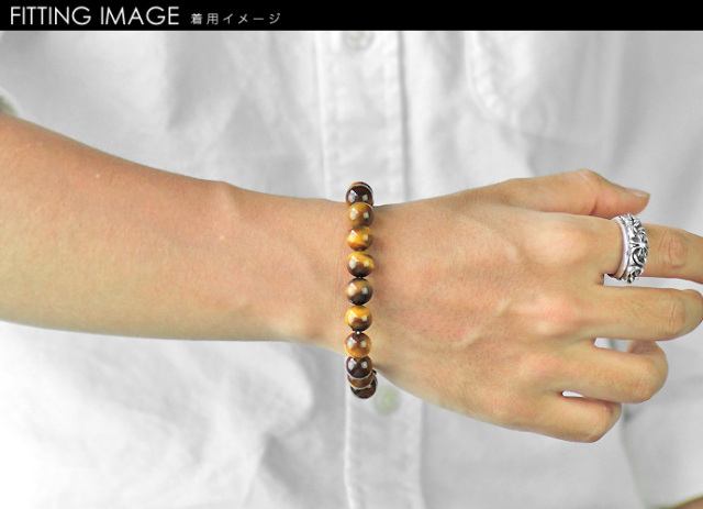 タイガーアイの10mm玉を使った天然石のブレスレットです。タイガーアイは洞察力を高め、物事の本質を見抜き、成功をもたらす石とされています。仕事運や金運を高め、目標達成のサポートをしてくれる石です。