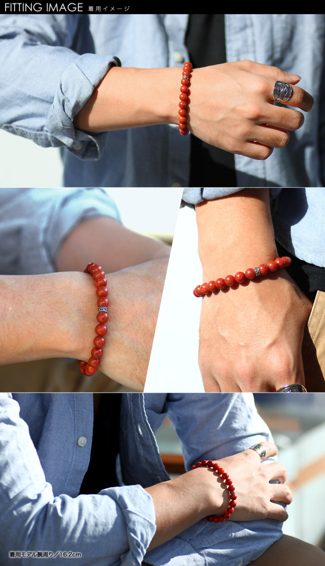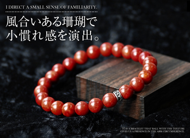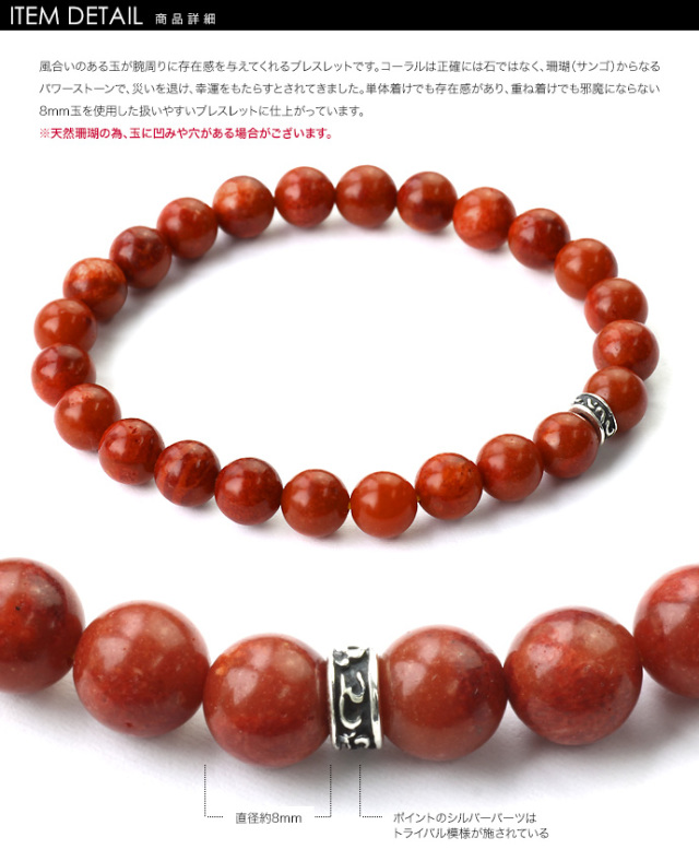 プットシルバーレッドコーラルストーン ブレスレット 天然石 珊瑚