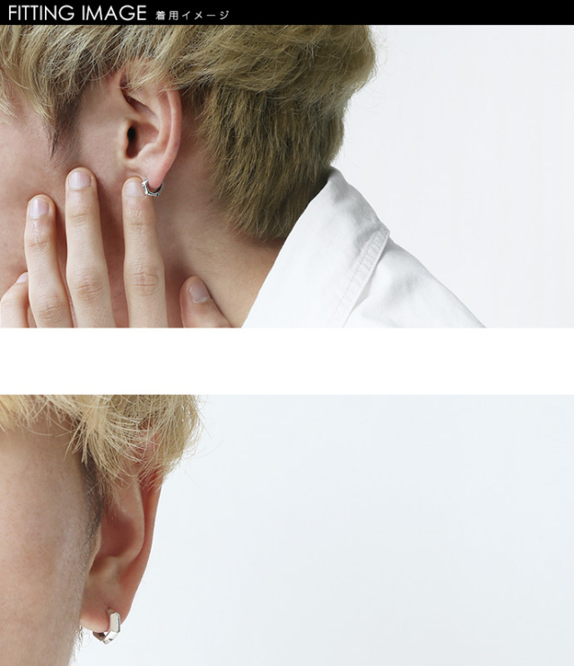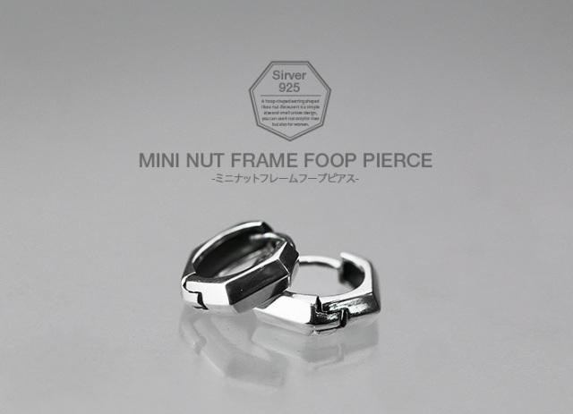 ミニナットフレーム フープ ピアス シルバー メンズ 男性 [シルバーピアス] 片耳用(1個売り)