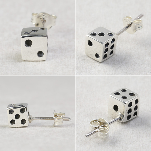 ほどよいボリュームと立体感がポップな印象を与えてくれる、ダイス(サイコロ)をモチーフにしたスタッドピアス。