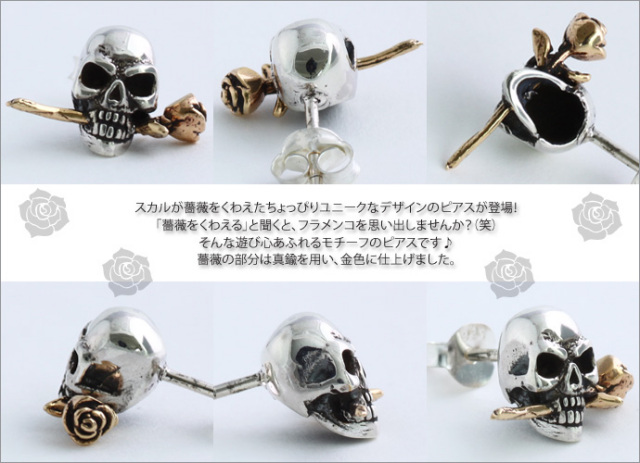 フラメンコローズ スカル ピアス メンズ シルバー アクセサリー 男性 [シルバーピアス] 片耳用(1個売り)