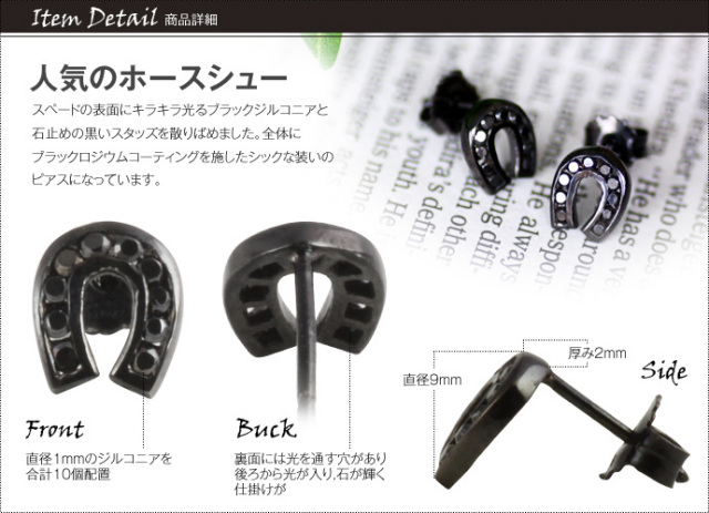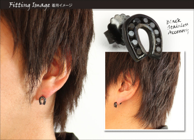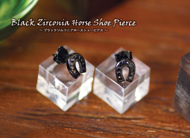 ブラック ジルコニア ホースシュー ピアス メンズ シルバー アクセサリー 男性 [シルバーピアス] 片耳用(1個売り)