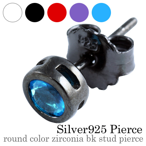 • ラウンドカラー ジルコニア BKコーティング スタッド ピアス (アクアブルー) アクセサリー メンズ [シルバーピアス] 片耳用(1個売り)