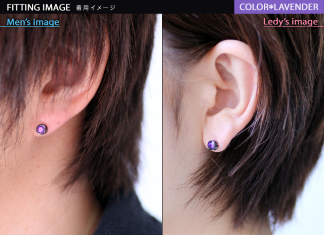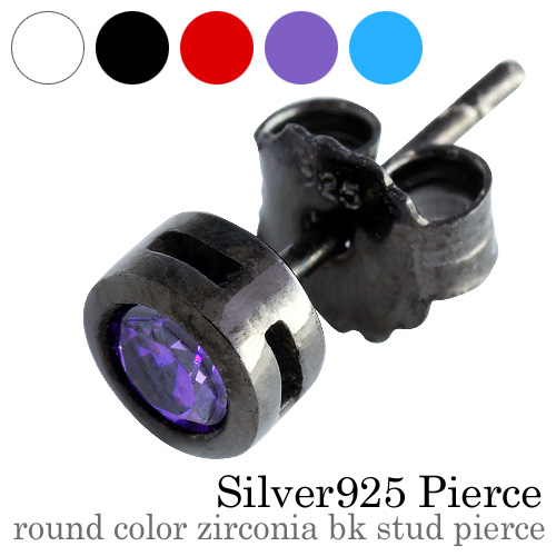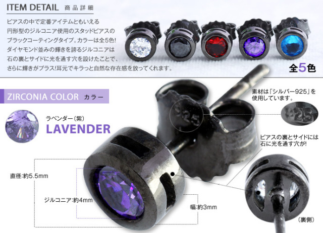 • ラウンドカラー ジルコニア BKコーティング スタッド ピアス (ラベンダー) アクセサリー メンズ [シルバーピアス] 片耳用(1個売り)
