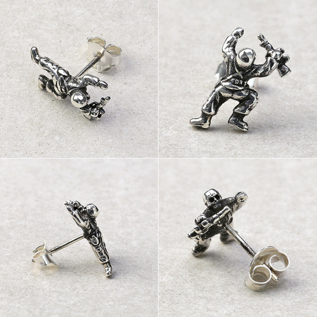スカル ソルジャー スタッドピアス シルバー アクセサリー ピアス メンズ 兵士 兵隊 骸骨 ミニチュア [シルバーピアス] 片耳用(1個売り)