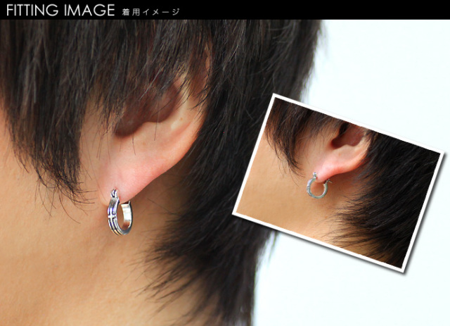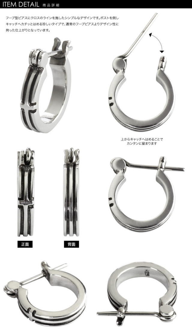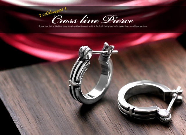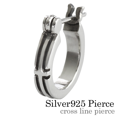クロス ライン ピアス フープピアス 遮断式 シルバー メンズ 男性 [シルバーピアス] 片耳用(1個売り)