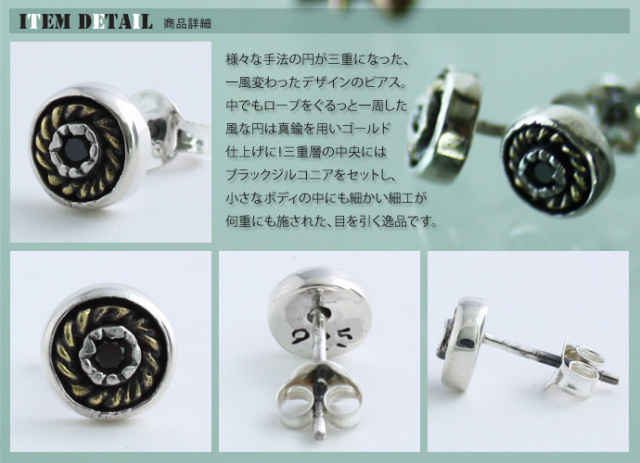 ゴールドロープトリプル サークル スタッド ピアス メンズ シルバー アクセサリー 男性 [シルバーピアス] 片耳用(1個売り)