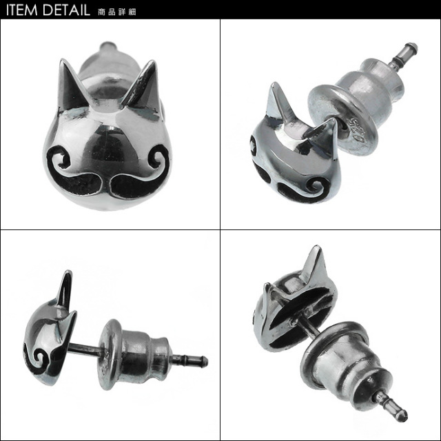 ビアード キャット ピアス ピアス メンズ シルバー アクセサリー 男性 猫 [シルバーピアス] 片耳用(1個売り)