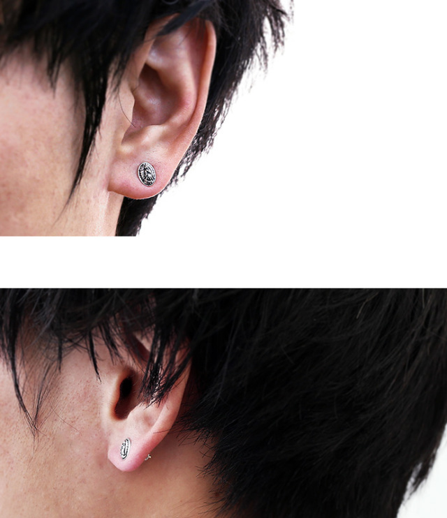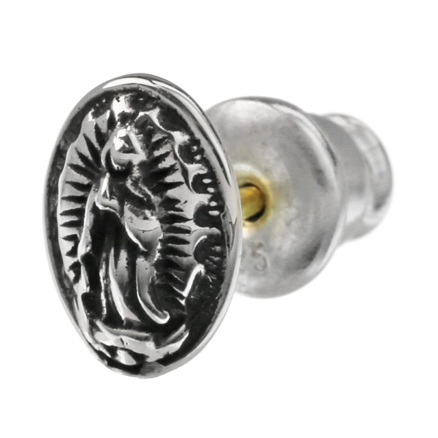 マリアメダイ スタッド ピアス メンズ シルバー アクセサリー 男性 K18ゴールドポスト マリア [シルバーピアス] 片耳用(1個売り)