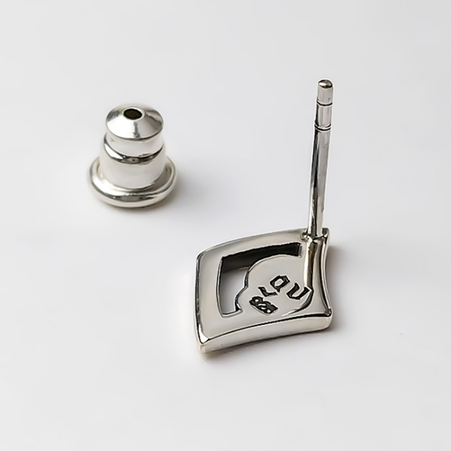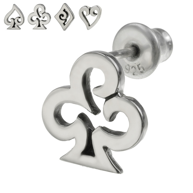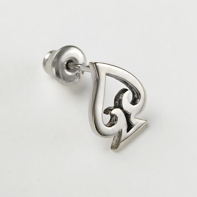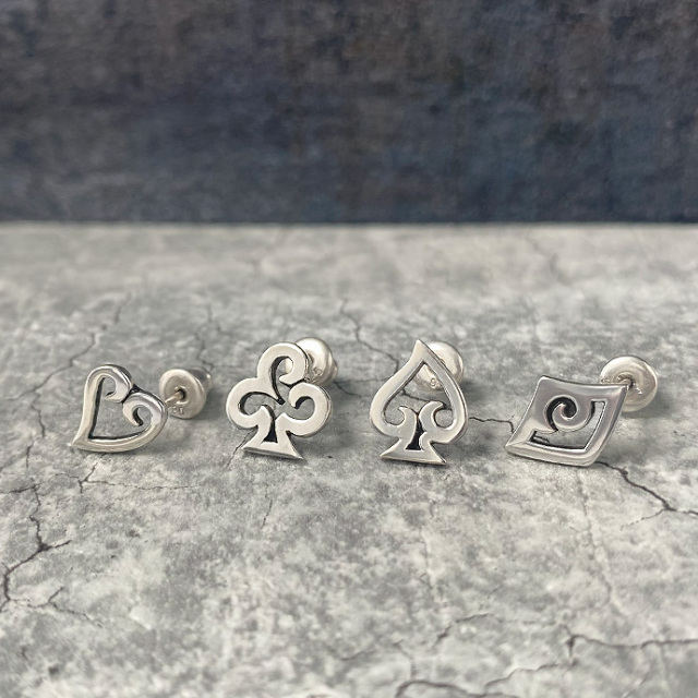 トランプマークがモチーフのスタッドピアス。チラリと見える燻し加工の黒色が、ポップすぎずクールな印象に。アラベスク(ツタ)を思わせるくるんとした曲線がアクセントになった、男女問わず着けられるアイテムです。