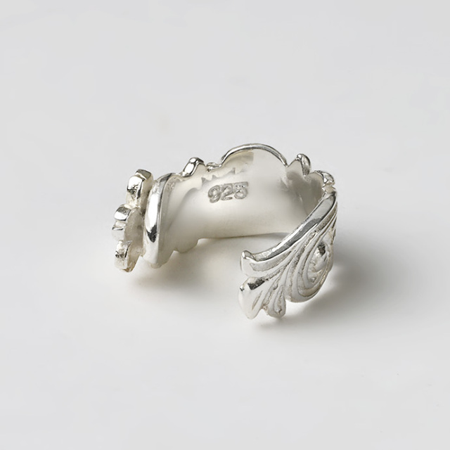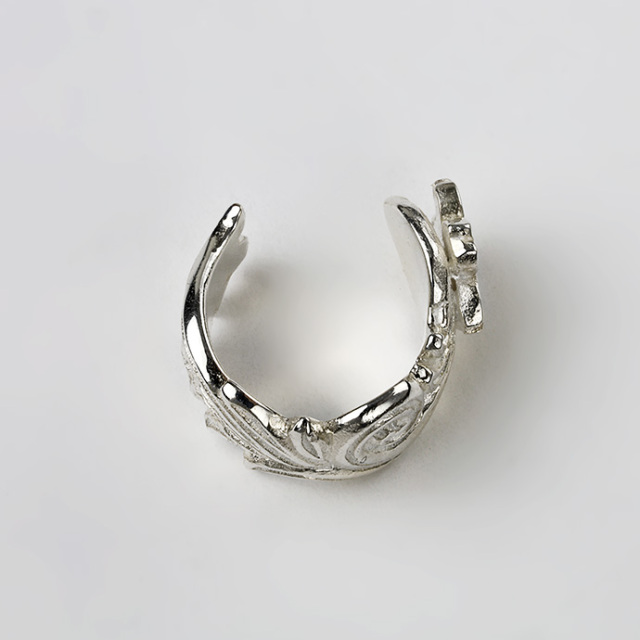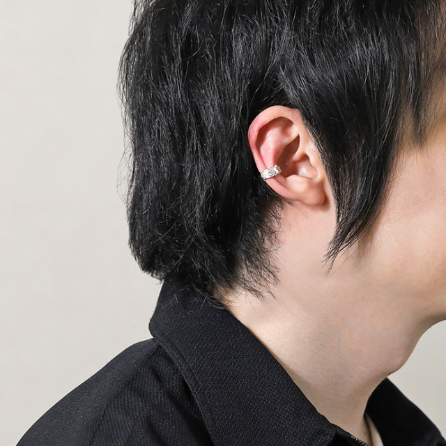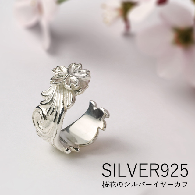 和柄としても人気なモチーフ・桜をワンポイントアクセントにしたイヤーカフです。ボディ全体は吹きすさぶ風や波を思わせる曲線を繊細な彫金で表現。シルバーの繊細な輝きが目を惹く、性別問わず着けられる桜アイテムです。