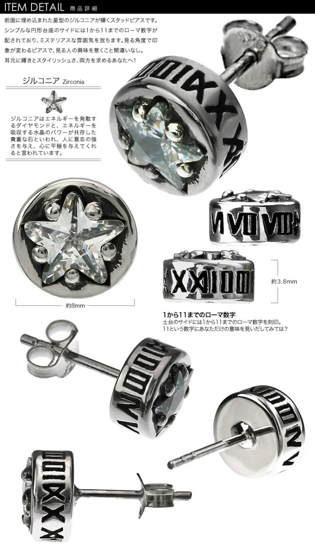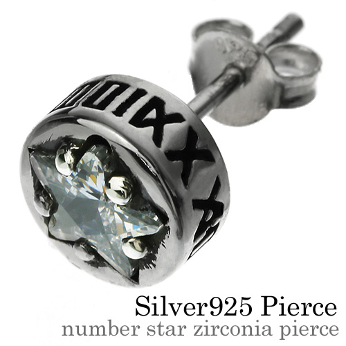 ナンバー スター ジルコニア ピアス [シルバーピアス] 片耳用(1個売り)
