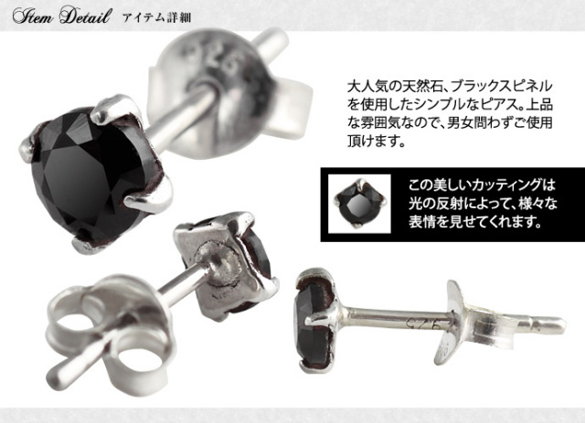 フォークロウブラックスピネル ピアス メンズ シルバー アクセサリー 男性 [シルバーピアス] 片耳用(1個売り)