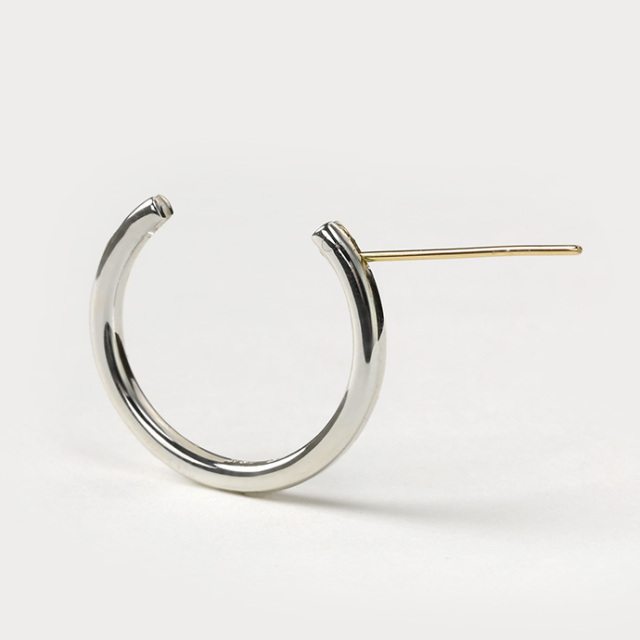 大きめでシンプルな丸線のフープピアス。K18ゴールド製のポストがアクセントになっています。様々なシーンやコーデにさり気なく着けられるシンプルさが嬉しいアクセサリーです。