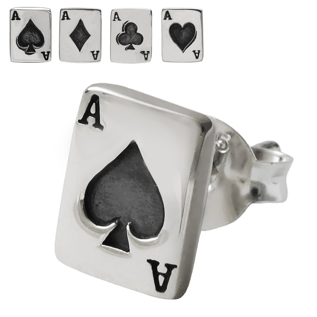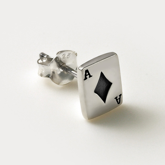 人気のモチーフ・トランプのA(エース)のカードがモチーフになったピアスです。シンプルながらインパクトのあるモチーフに加え、精巧な造りなので注目度◎!A(エース)はトランプで一番強い役である所から主力選手を意味する「エース」の語源にもなっています。スペード、ダイヤ、ハート、クラブの4種類から選べるのが嬉しい、プレゼントにも喜ばれそうなアイテムです。