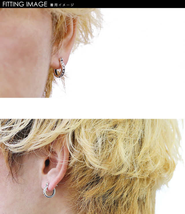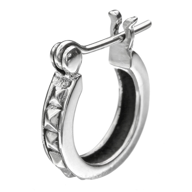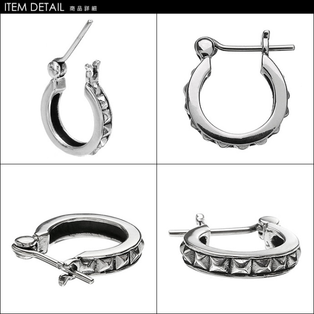 スクエア スタッズ ライン フープピアス 遮断式 メンズ シルバー アクセサリー 男性 鋲 [シルバーピアス] 片耳用(1個売り)
