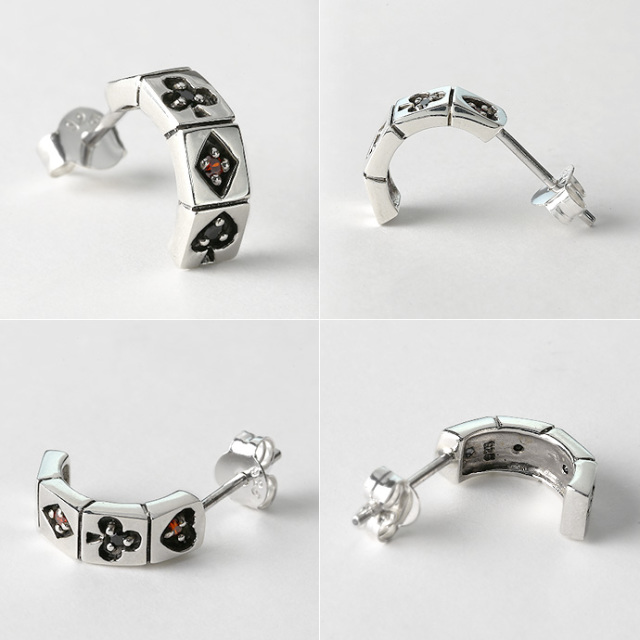ジルコニア トランプ ピアス メンズ シルバー アクセサリー 男性 [シルバーピアス] 片耳用(1個売り)
