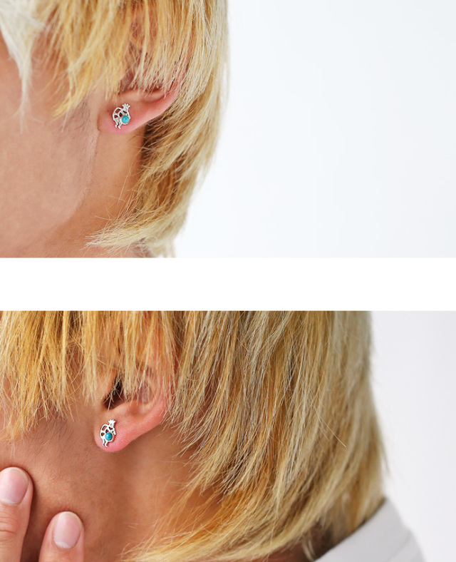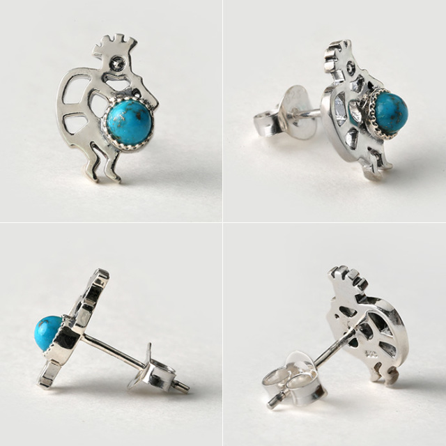 ココペリ ポイント ターコイズ ピアス シルバーアクセサリー [シルバーピアス] メンズ 男性 スタッドピアス 片耳用(1個売り)